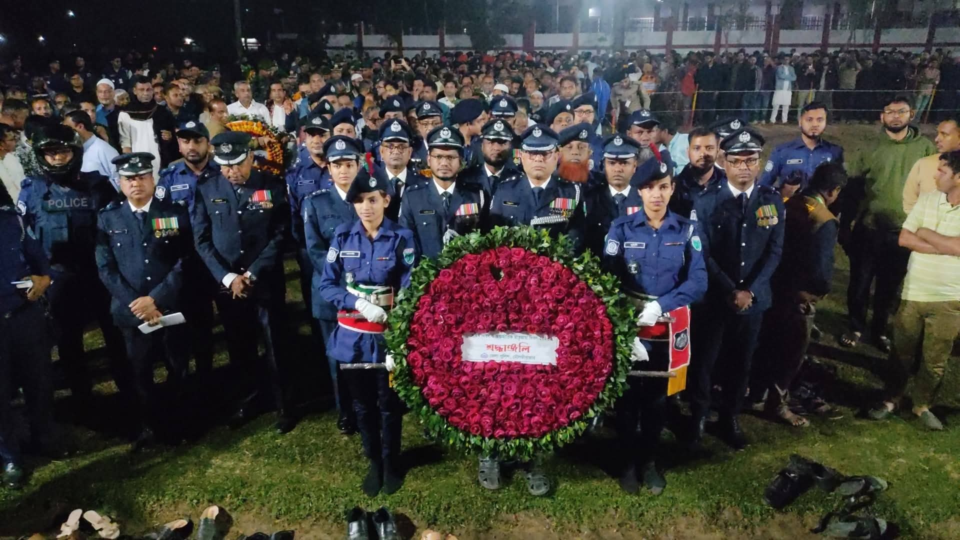 একুশের প্রথম প্রহরে মৌলভীবাজার শহীদ মিনারে শ্রদ্ধা জানাতে হাজারো মানুষের ঢল