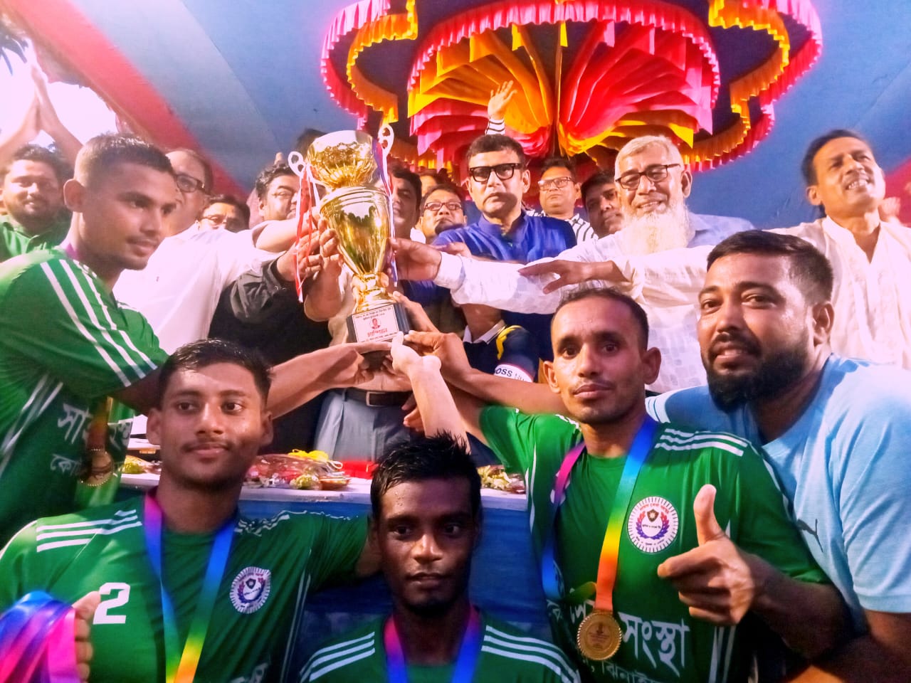 পরে চ্যাম্পিয়ন দলকে ৬০ হাজার ও রানার্স আপ দলকে ৪০ হাজার টাকা পুরস্কার তুলে দেন অনুষ্ঠানে প্রধান অতিথি। খেলা শেষে সন্ধ্যায় মনোজ্ঞ সাংস্কৃতিক অনুষ্ঠান হয় খেলার মাঠে।