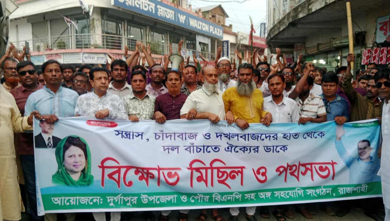 দুর্গাপুরে সন্ত্রাস ও চাঁদাবাজির বিরুদ্ধে বিএনপির বিক্ষোভ মিছিল ও পথসভা