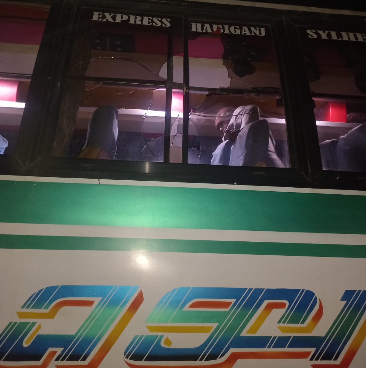 মৌলভীবাজারে চলন্ত যাত্রীবাহী বাসে পাথর নিক্ষেপ যাত্রীরা হতাশ