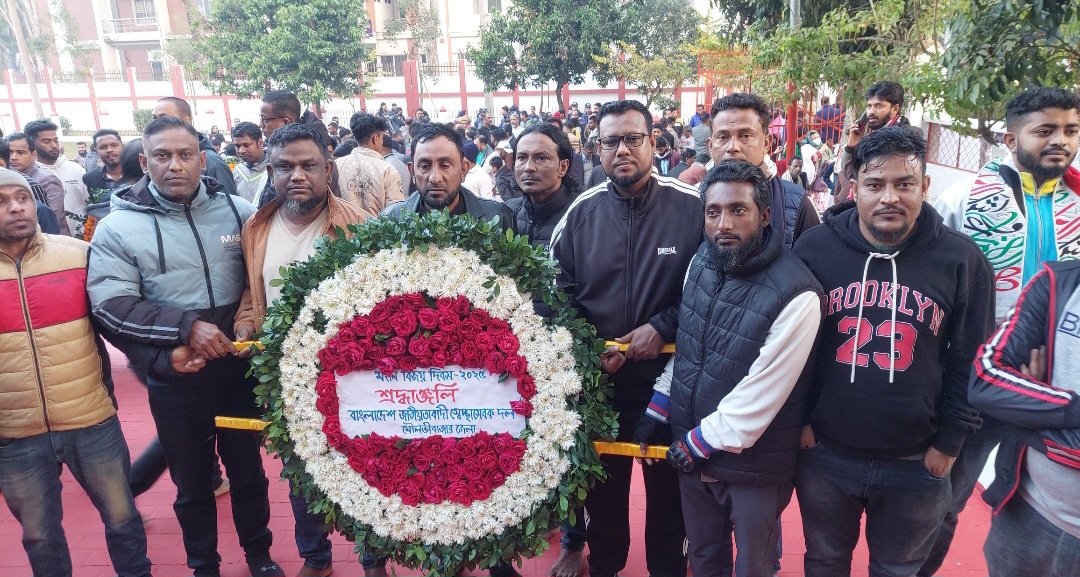 মৌলভীবাজার জেলা প্রশাসনের পক্ষ থেকে জেলা প্রশাসক তৌহিদুজ্জামান পাভেল পুষ্পাঞ্জলি অর্পন করেছেন।