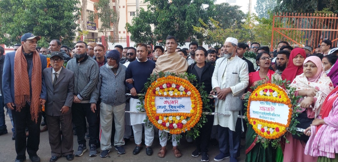 মৌলভীবাজার জেলা প্রশাসনের পক্ষ থেকে জেলা প্রশাসক তৌহিদুজ্জামান পাভেল পুষ্পাঞ্জলি অর্পন করেছেন।