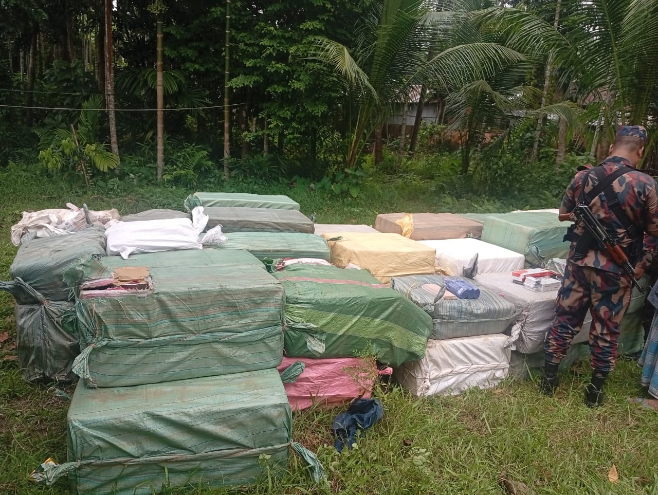 সেনাবাহিনী ও বিজিবি এর যৌথ অভিযানে মৌলভীবাজারে অবৈধ পণ্য জব্দ